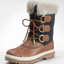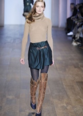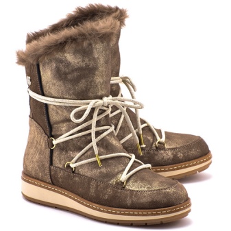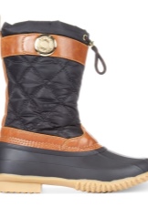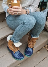 - Fashion designers decorate shortened winter boots with ordinary and fancy lacing, which is fixed with metal rings and golden clips. Sometimes the fur peeks over the top of the shaft.