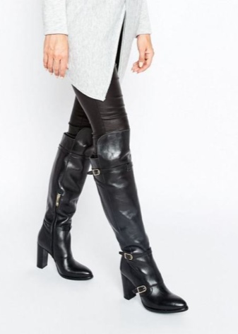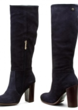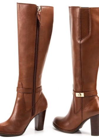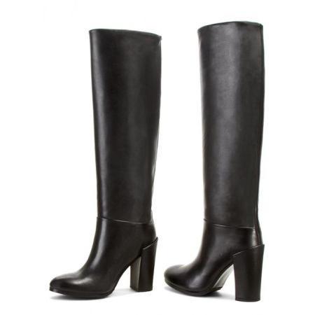 - The most popular among fans of the brand are thick-heeled boots. The shape and height of the heel depends on the preferences of the fair sex. The products of this line are not inferior in elegance to stilettos. The heel is solid or in a contrasting tone with the top of the model.