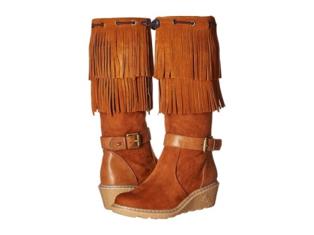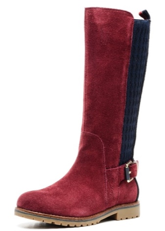 Red suede boots with a fringe look extraordinary. The boots on a low platform sole are very comfortable and do not deform children's feet. The sole with a relief provides good traction with an icy surface, the back is reinforced with a leather insert. At the top of the shafts, the designers provided a decor in the form of lapels cut into a fringe. It is located in two rows and is additionally fixed with elastic laces passing around the shaft through the eyelets.