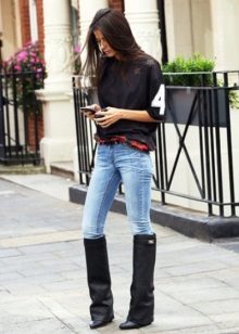 Such boots are also well suited to girls of the so-called athletic physique, that is, tall, slim, with broad shoulders and narrow hips. In this case, the image will turn out to be bold and brutal.