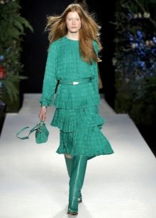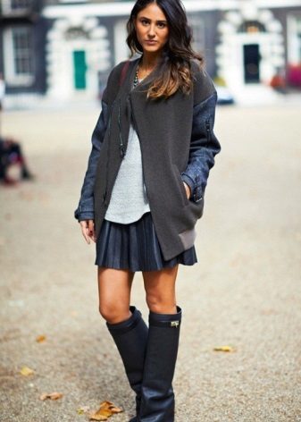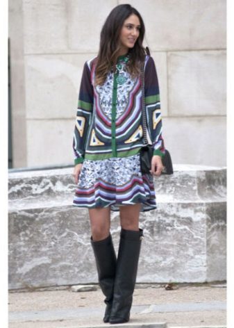 But if you really, really want to put on these boots, clothes can help here. For example, a layered version of a short skirt or to the knee.