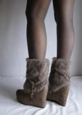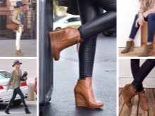 High suede wedge models look very beautiful and feminine. Such shoes fit perfectly on the ladies leg and can fit into almost all looks. Similar models with wedges in wood look very harmoniously with women's outfits in casual style. Classic boots in neutral colors will be the perfect solution for shopping, regular walks or work.