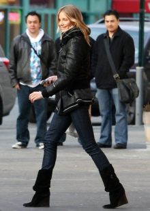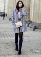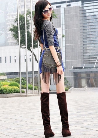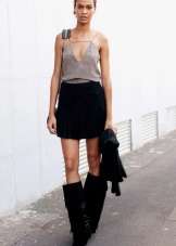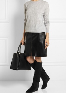 A short skirt or a straight model just above the knee will look great with high boots and boots. Suede shoes are in harmony with things from plain materials or youth jeans. The combination of high boots and a short skirt will visually make ladies legs longer and slimmer.