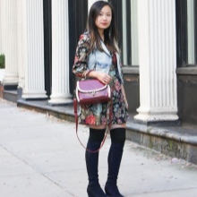 With low boots or ankle boots, fitted, straight and loose dresses and elongated tunics in an urban style will look great.To high velvet boots and boots, you can safely wear sexy cocktail or short holiday dresses. A vivid image can be supplemented with a clutch or handbag in the color of shoes.