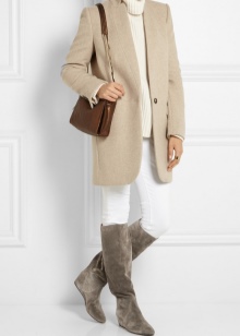 Suede looks great with jeans. Pants are better to fill in the inside of the shoe, especially when it comes to tall models. Classic jeans can be replaced with trendy skinny and juggins. Such a stylish casual set will be the perfect solution for everyday wear or for trips with friends to the cinema and cafe.