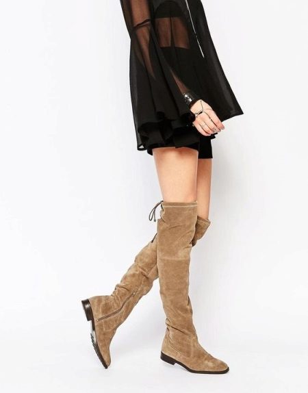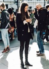 For example, high boots, called boots, are great for tight-fitting trousers, as well as mini skirts. This type of shoe perfectly emphasizes the beauty of slender legs, even in a model without a heel.