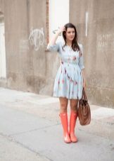This model is perfect as a working option, in combination with a skirt suit, a strict sundress or dress. It is up to the knee that rubber boots of the standard model are also made, since a longer length is not very convenient, and a shorter one is not practical - splashes of dirt will fall on clothes.