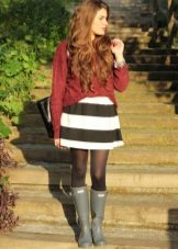 Adult models of rubber boots most often have a floral pattern, images of small stars or peas. So the product does not look inappropriate for age and, at the same time, adds color to the image.