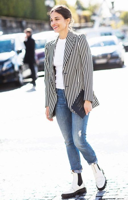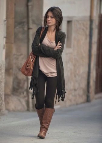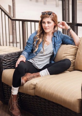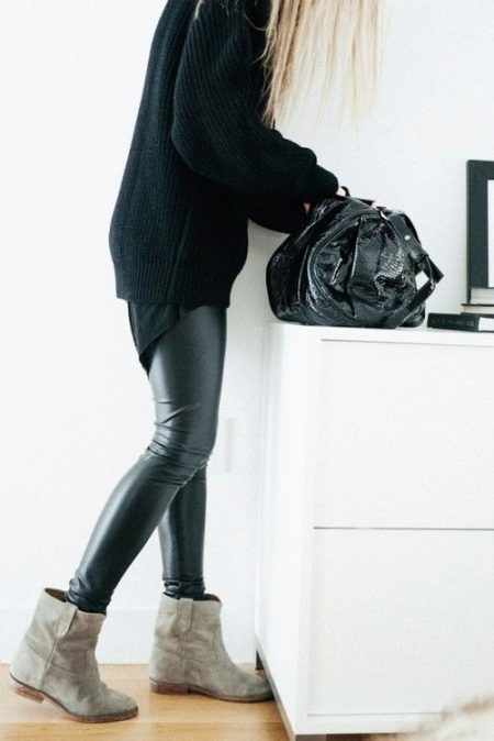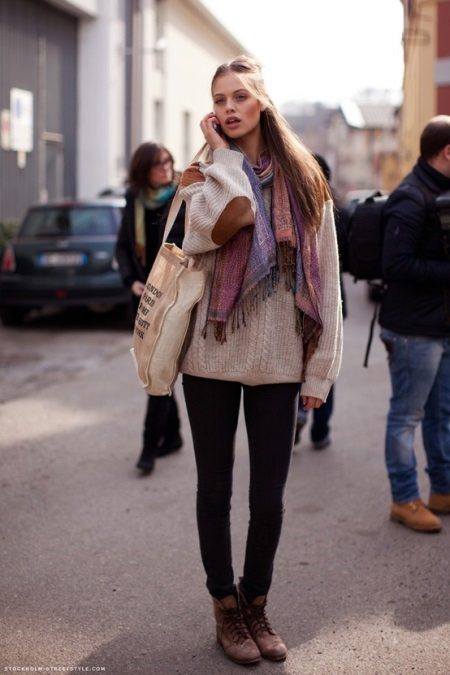 With trouser images and everything is much simpler. Trousers and jeans of skinny models, all kinds of leggings and other types of this clothing that can easily be tucked into shoes are perfect. You can also use wide or flared trousers, put on a boot, under which it will not be difficult.