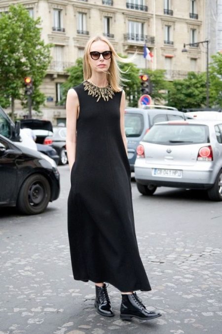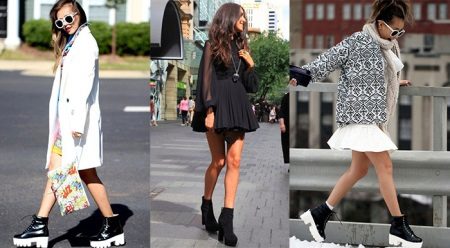 Tractor-soled boots look somewhat massive, so you should be careful with them and not go too far with the rest of the outfit.You can create stylish images with light airy dresses, complementing them with leather jackets to match the shoes.