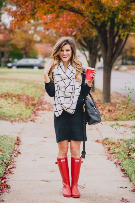 Evening dress is no exception. It can also be very successfully combined with such a model of boots, the main thing is to successfully choose a style. A model with a skirt cut in the sun and a semi-sun, the length of which is not lower than the knee, is suitable. A long dress made of flowing fabric covering shoes will also look beautiful.