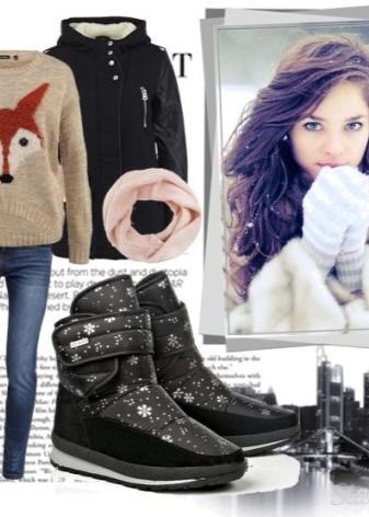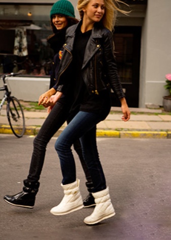 Dutiks with down jackets and sports jackets go well together. Fashionable varnish jackets, sheepskin coats, fur coats and formal coats with such shoes are better not to wear - this smacks of the very incompatibility mentioned above. Also, the dutiks will look good with a fur on the fur.