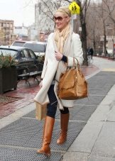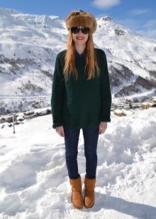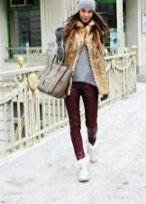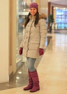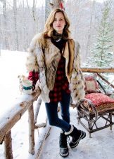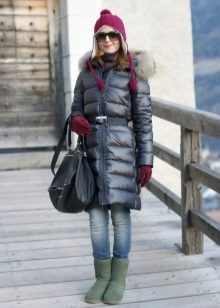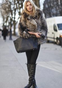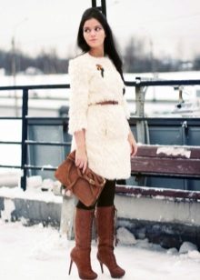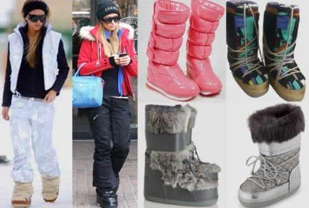 Comfortable and comfortable shoes are most often chosen for down jackets or jackets. For example, dutiks, ugg boots, high fur boots or boots with fur. The fur edge usually decorates the upper part of the boot, so such models can be worn even in rather slushy weather. The fur can be the same color with boots or contrasting. In addition to the edge, the fur can line the inside of the boot or be used as decor.