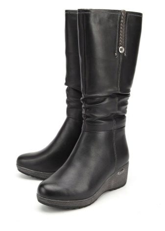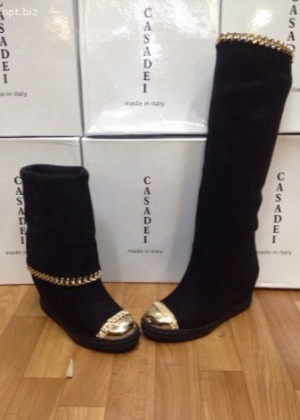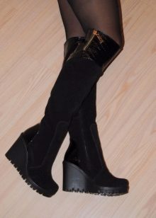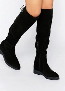 A tapered toe and an elegant wedge make winter boots very feminine. Wedge boots look great in everyday life, and as a complement to elegant clothes. Especially if they are made of suede, velor in delicate pastel colors and other noble materials.