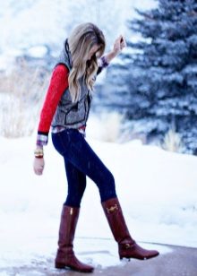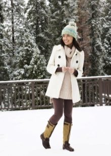 To make a winter wardrobe more vivid and beautiful, boots of deep and rich tones will help. It can be burgundy, plum, emerald, deep blue, cream, turquoise, cherry, saturated orange and other beautiful shades. Boots of bright colors are usually selected to match the outerwear or in a set for a hat, scarf, mittens, bag.