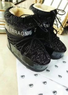 For lovers of bright, extravagant images, a collection of winter shoes from Chiara Ferragni. Golden or silver dutiks with thick soles will not leave indifferent any fashionista. Glamorous boots fit perfectly into the everyday look of a stylish young girl. The company uses rhinestones, lacing, shiny materials, etc. as a decor for its shoes.