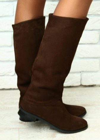 Suede boots, of course, are not inferior, or even superior to leather models in a purely aesthetic terms. Suede is a very thin, thoroughbred material. Therefore, boots made of this material are very moody to weather changes. They do not like slush, as well as the reagents with which they sprinkle snow. Ideal option for such boots is dry frosty weather or movement by car.