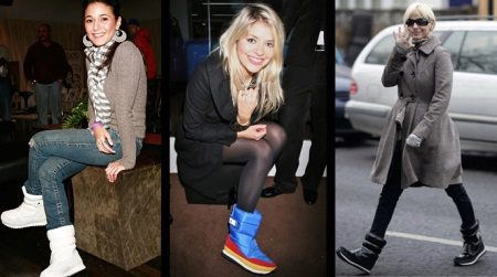 Typically, dutics are made in a combination of several materials, for example, textile, nylon, velor or leather. A bit awkward and awkward dutiks can become part of not only a sports wardrobe. This season, fashion is a combination of seemingly incompatible things. For example, stylish, embroidered with rhinestones and stones dutiks or ugg boots will look great in combination with a leather jacket or a short sheepskin coat, for example.