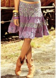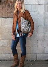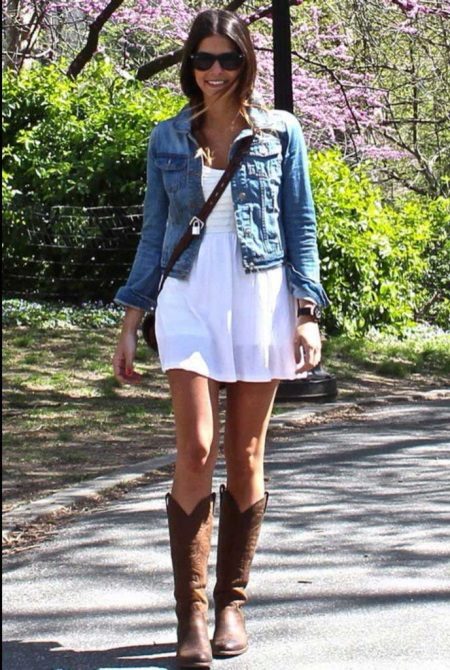 Well, what summer look with elements of audacity will do without dark brown cowboy boots? With such a shoe option, a snow-white cotton mini dress will look great, as well as a light denim jacket with a small handbag matching the boots.