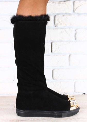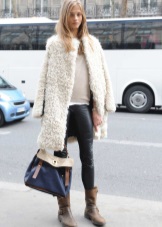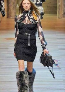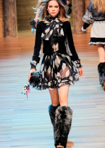 - High boots. The boots have a free bootleg, not equipped with a buckle. The fur lining provides heat from the inside, and the fur outside is a rather interesting decorative move.