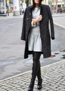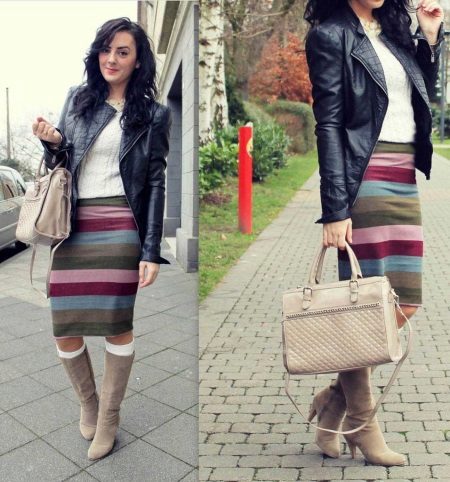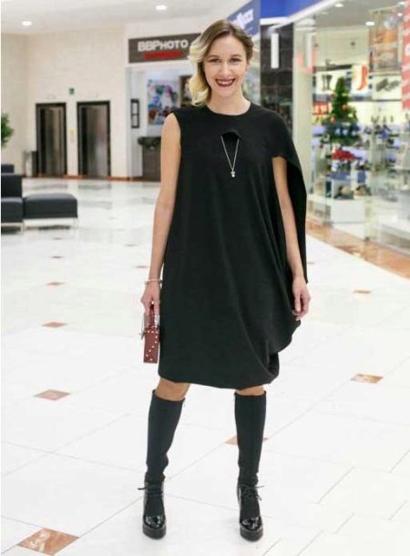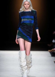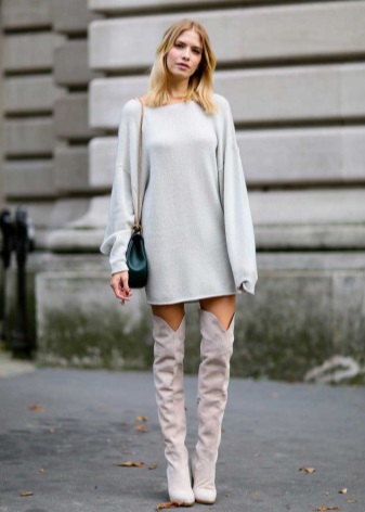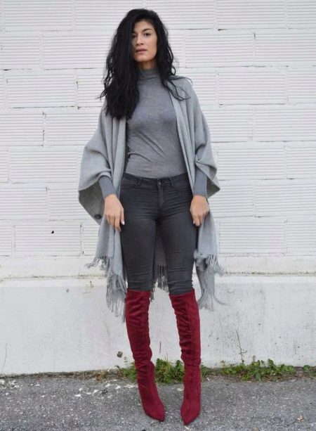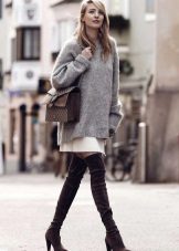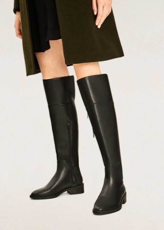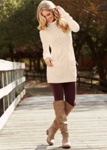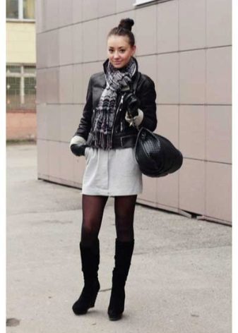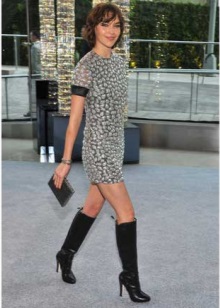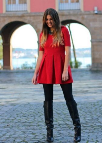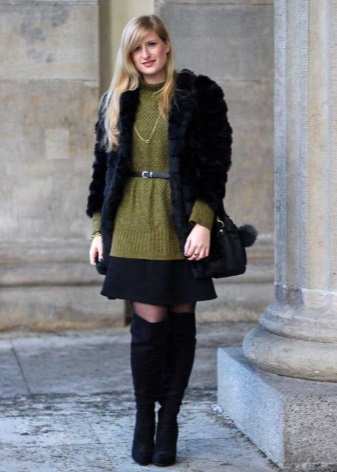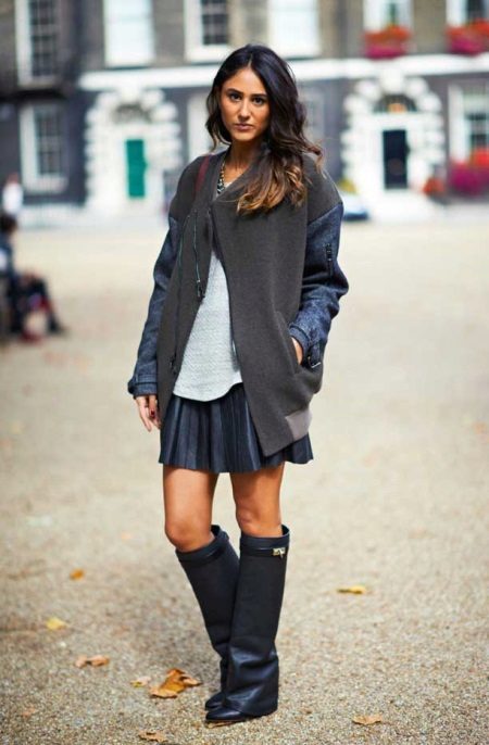 High-heeled boots are good because they are perfect for skirts. Choosing a model to the knee in high, but steady heels, you can safely wear a dress or skirt of different lengths. In some cases, flat boots may also work.