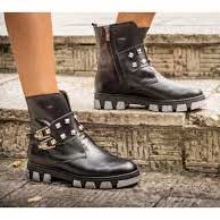 Boots with decor from large stones, inserts from a material different from the main one and with decor in the form of fur edges that look a little more feminine look beautiful.