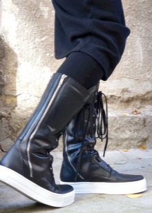 The manufacturers of popular sneakers did not stop at one model of sneakers and created stunning sports-style boots. The model has a high shaft and a hidden platform, a fairly dense rubberized sole and a warm fur lining.