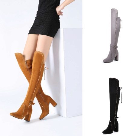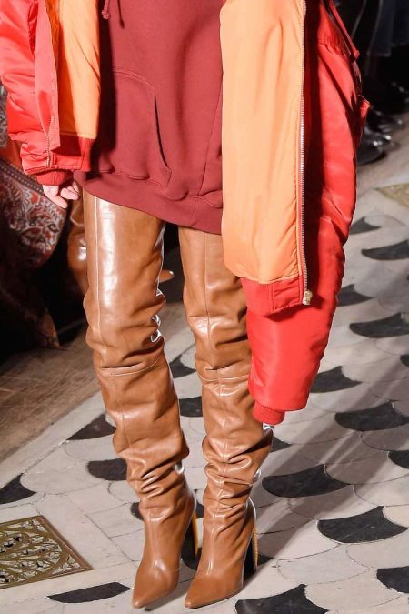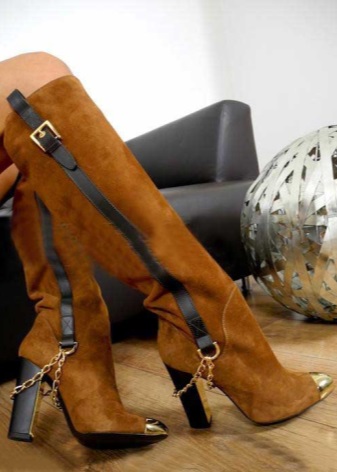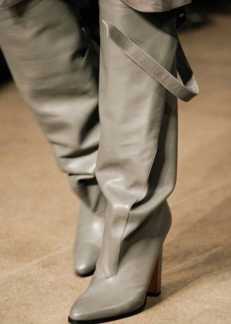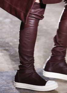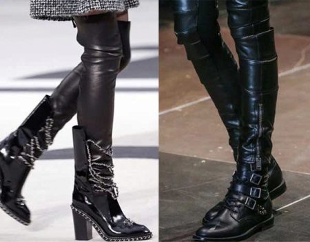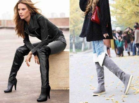 - Treads. Model boots just above the knee. Most often made of suede or leather, has a dense lining of warm fur. May have a flat sole or high heel.