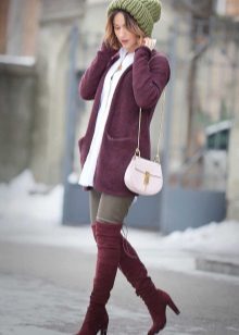 Unusually, but no less beautiful, boots of plum, purple, lilac colors and various multifaceted shades look. The eggplant color will help to emphasize the slender legs and give the image of mystery, and violet-colored boots can become a bright detail.