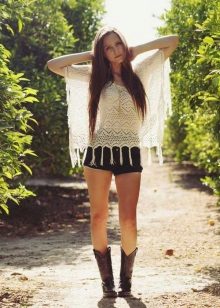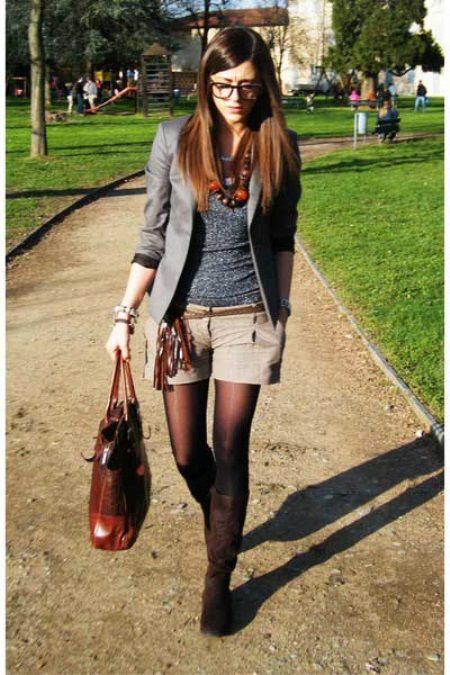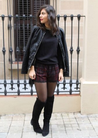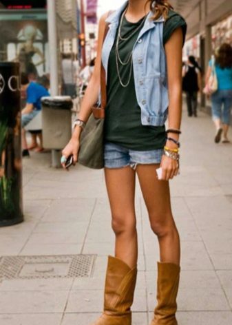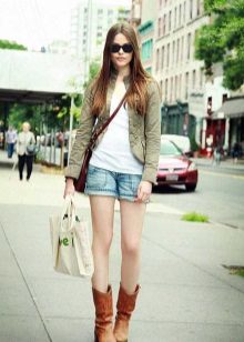 Lightweight boots, for example, decorative knitted models, will go well with denim shorts. A brown cowboy-style boot is also a good choice. For classic shorts, you can choose stylish over the knee boots or a heeled knee-length model.