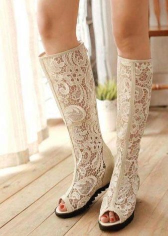 To light boots most often include lace, knitted patterns. The product is a regular boot of different heights, on a flat sole, but ventilated and breathable.