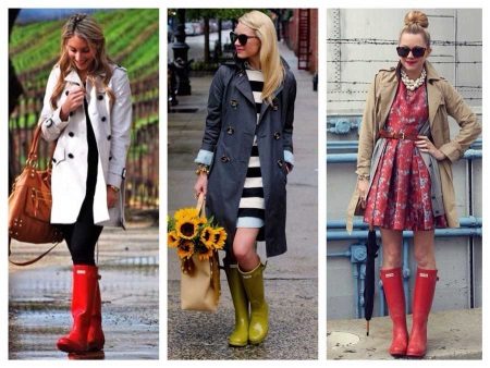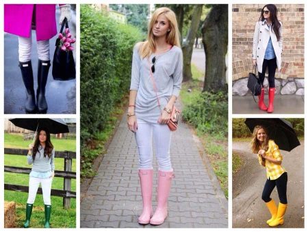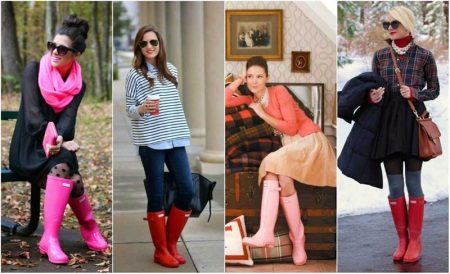 For example, pink boots are the hit of the season, helping to create the most incredible and pompous images. These can be models made of leather, suede or stylish rubber boots. The main thing is not to overdo it and pick up the remaining details in a more restrained, classic style.