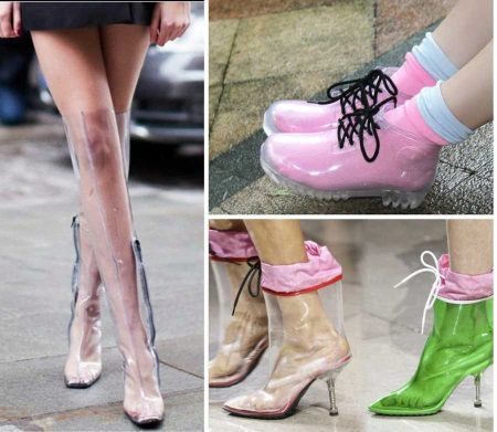 Among the rubber boots, there is one rather unusual model that surprises others with its appearance. Transparent boots! Although they perform the same functions as ordinary boots, not every girl will risk putting on such a model.