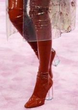 Among them are transparent options, “hidden”, merging with the main part according to the material and texture, richly decorated and in every possible way stand out with the help of color. Some heels even take on strange shapes, for example, a little curved, ornate, pot-bellied. There are boots with a heel displaced from the heel towards the midfoot.