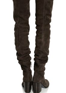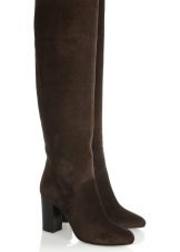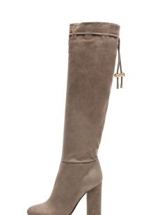 This year, special attention is paid to the boots, which, although they do not go out of date, nevertheless for some time lost mass popularity. High boots covering the knees are made of different materials, however, the most bias is made towards suede. Treads are decorated with leather imitating the texture of reptiles and fur inserts.