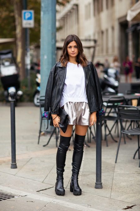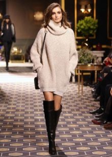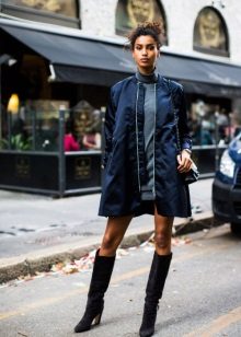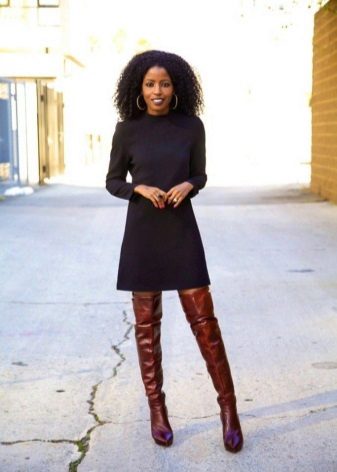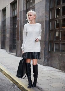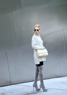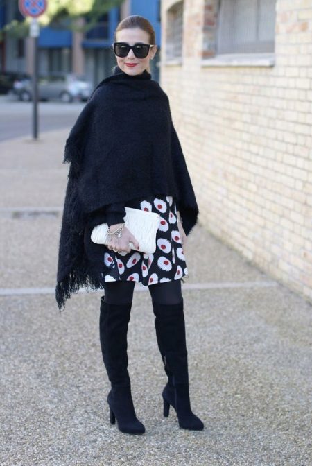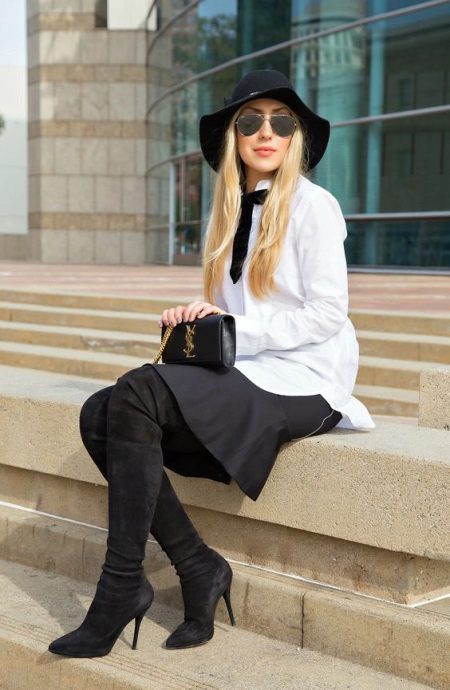 The longer the skirt, the shorter the height of the shoe should be and longer at the heel. Best of all, skirts are adjacent to the tight leg, since the wide one can make the lower body visually massive. Short skirts should be worn with over-boots, but in combination with leggings or thick tights, but stocking boots may well hide under the hem of the clothes. Knee-high boots can be safely combined with high knitted golfs that make the image very feminine and romantic.