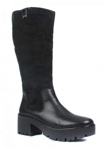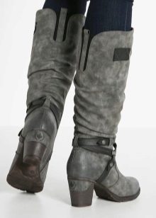 It is worth noting the original models of suede and velor, which look luxurious and rich, and thanks to the lining of wool, keep your feet warm and comfortable. You can pick up comfortable boots with heels or wedges, as well as flat soles.