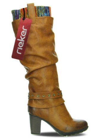 All the heels of the Rieker shoe manufacturer are shock-absorbing and are mostly of medium height and, thanks to their shape, very stable and practical. Shoes are made not only from natural or artificial materials - there are also combined models. For example, boots made of natural suede with a toe of faux patent leather or boots made of natural velor with strips of faux patent leather. The lining of sheep wool remains unchanged.