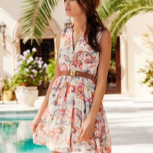 The color scheme and dresses, and sundress knows no limits.They can be plain, decorated with prints, performed in a combination of several colors or materials.