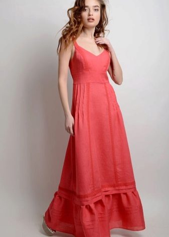 Sundress implies a fairly open upper part without a neck. Most often, the sundress does not have sleeves, but straps are present. Wide, narrow, straight or twisted crosswise.