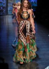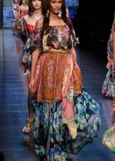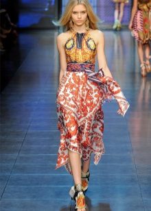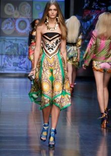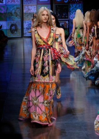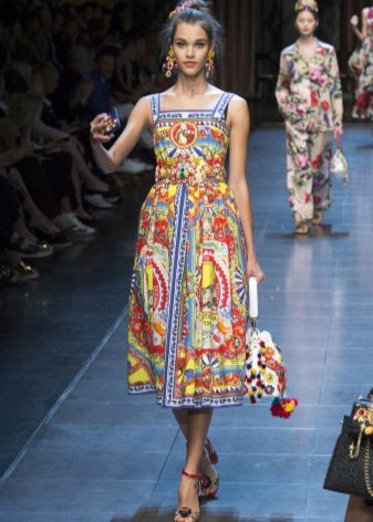 Another amazing model of a sundress from Dolce & Gabbana - option with maxi skirt. Designers from collection to collection fill long models with bright prints. These sarafans breathe Sicilian style, in them the woman immediately acquires vacation relaxation and charm, even if she walks the streets of a busy metropolis.