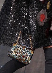 Dolce & Gabbana fashion house itself is pleased to supply girls with excellent accessories for any dress or sundress. Silk scarves, sunglasses and jewelry are produced under the brand name of the brand. Dolce & Gabbana also sews breathtaking bags - this season they are bright, have rich decor and a lot of jewelry.