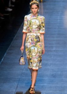 In the new season, the prints on Dolce & Gabbana dresses and sundresses look as if the woman is wearing not a dress, but a picture. Patterns depicting fruit trees, landscapes and ancient architecture, even the face of the Madonna, are found almost everywhere in the new collection of summer sundresses.