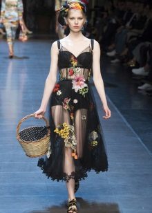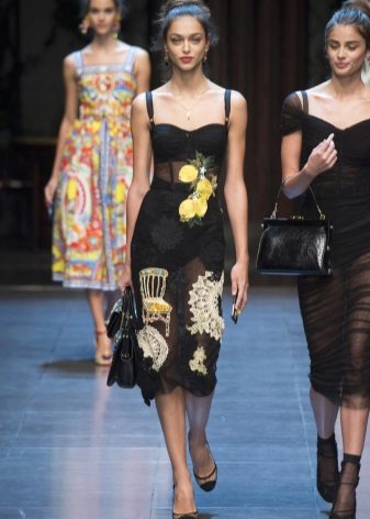 A number of Dolce & Gabbana sundress models, which once again won the hearts of many young ladies, are distinguished by a special fabric. Designers released several options at once, sewn from lace, mesh or translucent chiffon. The philosophy of the fashion house is as follows: "The female body is beautiful in nature and does not need to be hidden."