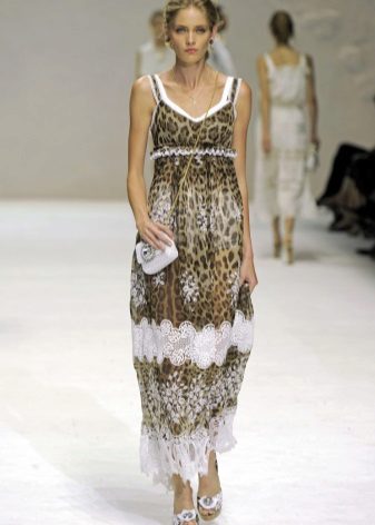 One of the first sundresses created by the brand was the “bustier” model in black, and the designers themselves call this product “the quintessence of style Dolce & Gabbana. Later, the fashion house released a leopard print dress-sundress, and still this model is a uniform of relaxed and confident ladies.