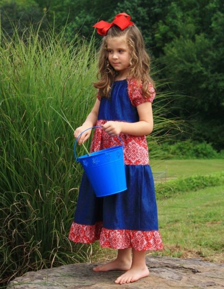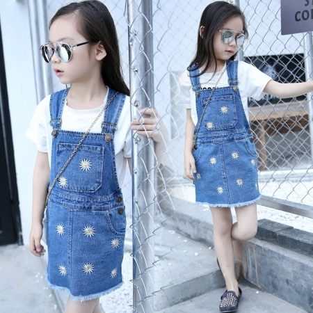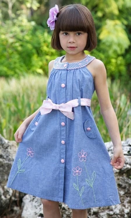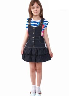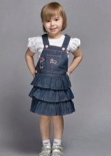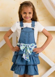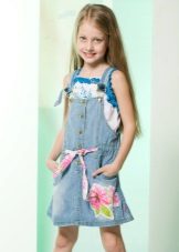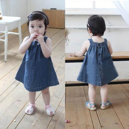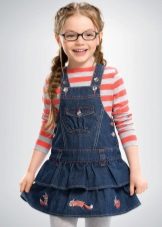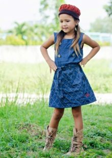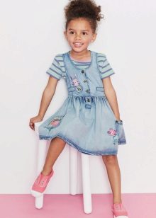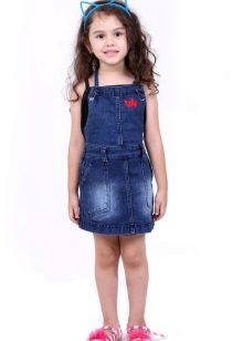 Denim sundress is perfect for walks and games in the fresh air. In a denim sundress you can go to school, to visit, to a festive event. Denim sundress goes well with other clothes. It always looks fashionable, stylish and relevant.