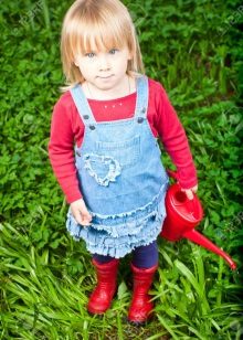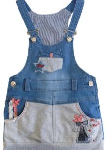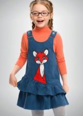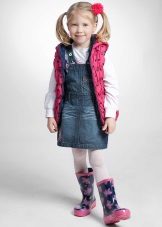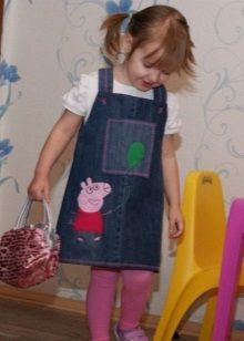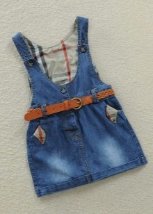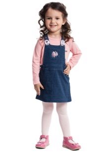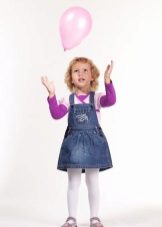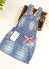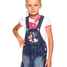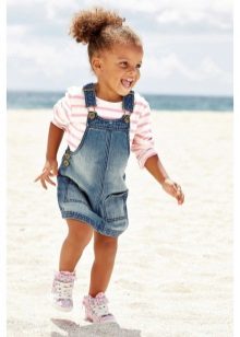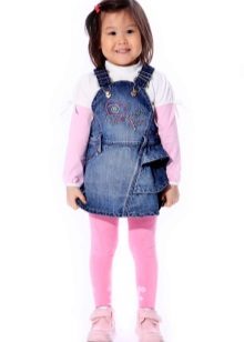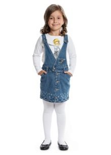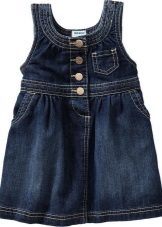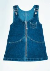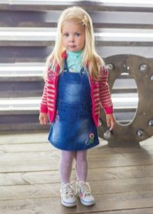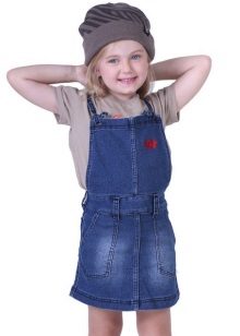 - Warm jeans sundress for the autumn-winter period is best to choose from dense, thick denim. Some models are additionally insulated with a special lining. Such a sarafan should have a sufficiently loose, simple cut so that the turtleneck worn under it does not hamper the movements and does not interfere with the child.