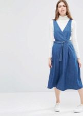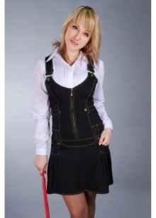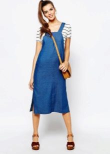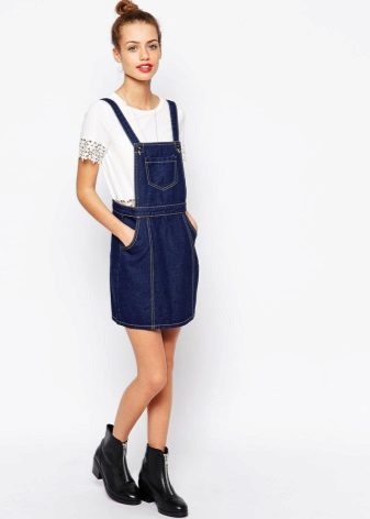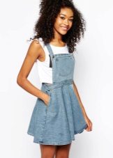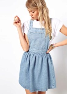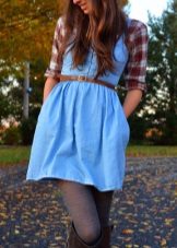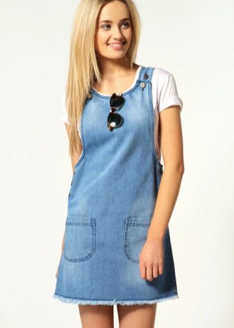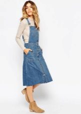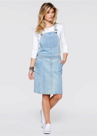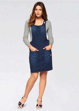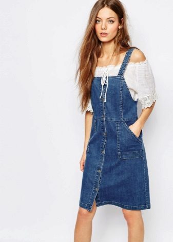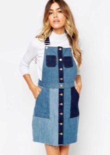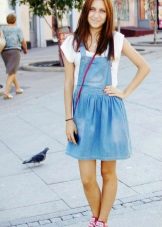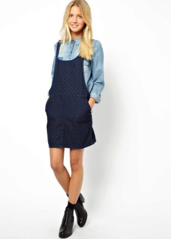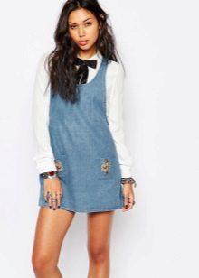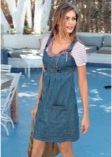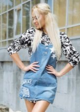 One of the main advantages of jeans sundresses is the ability to easily combine them with other things. The actual practicality of such a sarafan and the variety of patterns enables girls to create a variety of images.