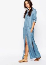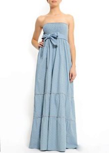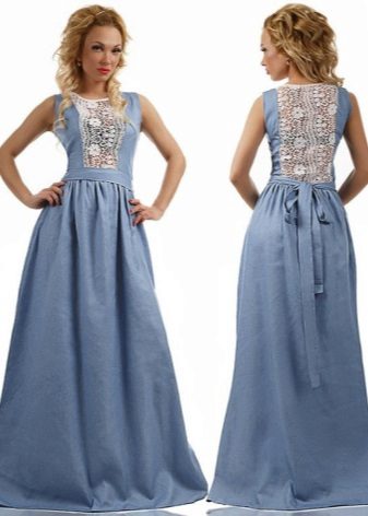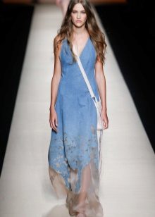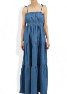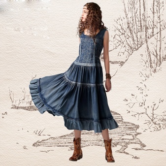 By the way, romantic models with a long skirt are not only an option for a celebration. Denim is a unique fabric that makes things even the most interesting cut suitable for every day. Sundresses with a skirt "on the floor" look feminine and easy, with them you can bring to life any image - from the gentle and frivolous to the style of "country".