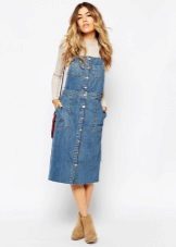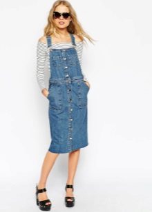 Denim sundresses with a midi skirt are no less relevant. So that the insidious length does not cut the figure in half and does not shorten the legs, stylists advise choosing models with a high waistline. Then the skirt visually “stretches” the legs, stabilizes the proportions. The result is a flawless silhouette.